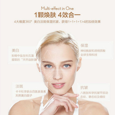 美白胶囊含有轻盈、丝滑、不油腻的精华液,适用于您的面部、颈部和肩部,可立即为您的肌肤注入青春活力。该配方可快速吸收,强化和修复肌肤外观。