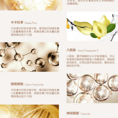 它含有特殊的澳大利亚天然天然提取物和 SWF 美白因子,可促进皮肤的自然修复过程,减少老化迹象的出现,使皮肤更紧致、美白、健康。