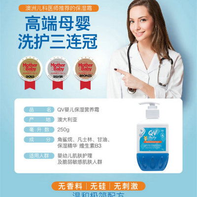 QV Baby Moisturizing Cream 适合每天使用,适用于湿疹、皮炎和牛皮癣等病症。