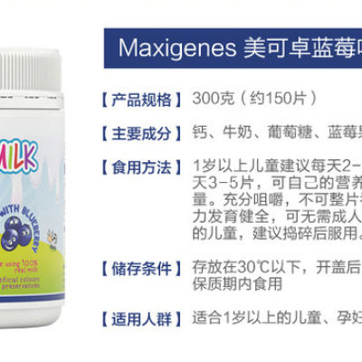Maxigenes美可卓儿童蓝莓护眼奶片150粒