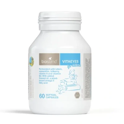 Island 儿童 VitaEyes 含有复杂的营养混合物,包括叶黄素、玉米黄质和越橘。它还含有 β-胡萝卜素(即预制维生素 A)和维生素 B2,可支持儿童健康的眼睛发育和眼睛健康。